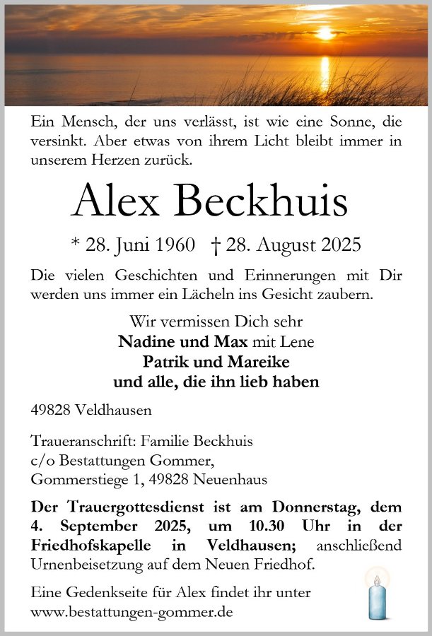 Ein Mensch, der uns verlässt, ist wie eine Sonne, die