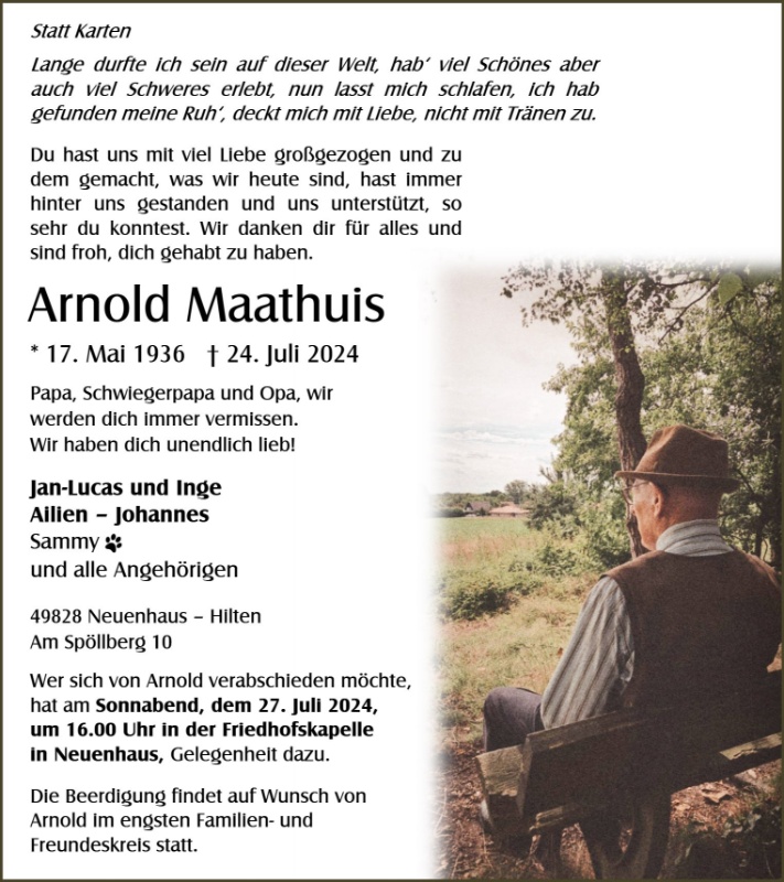 Öffentliche Abschiednahme, Friedhofskapelle Neuenhaus