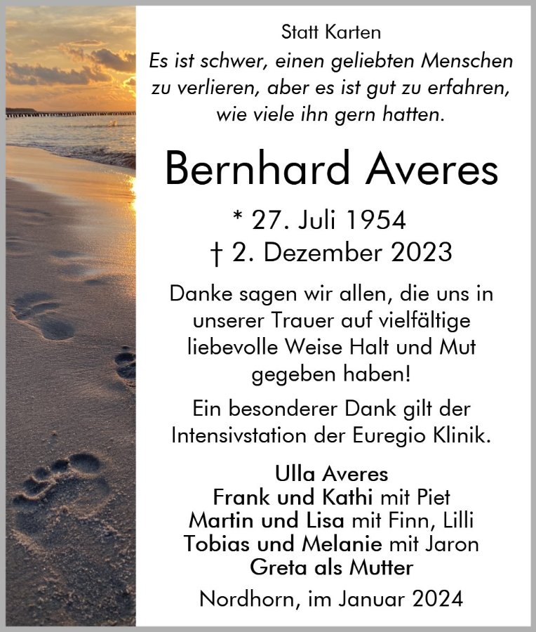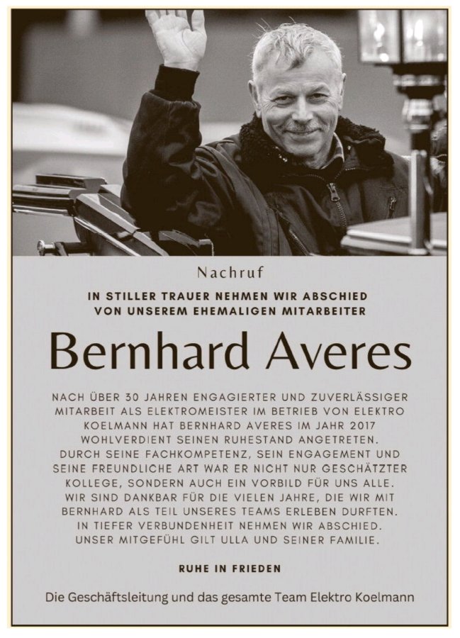 Wir wünschen der Familie Averes und ihren Angehörigen viel Kraft und richten unser herzliches Beileid aus.