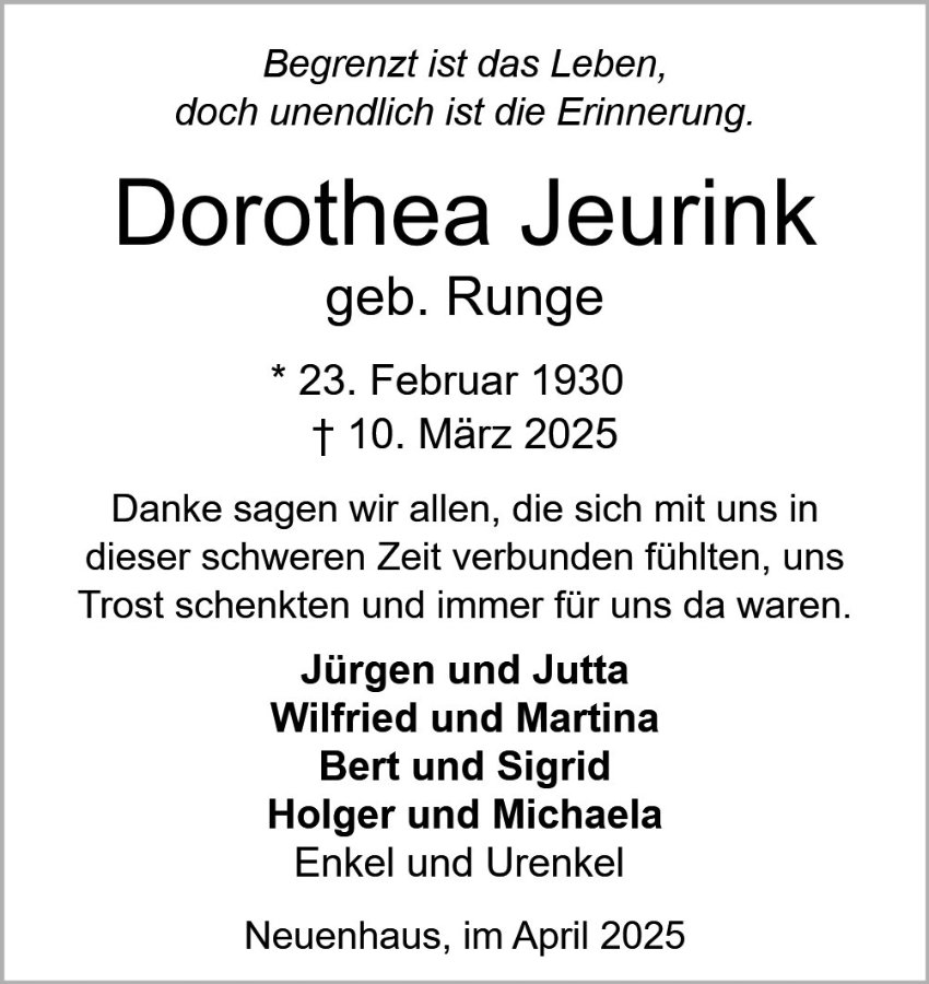 Dorothea Jeurink geb. Runge