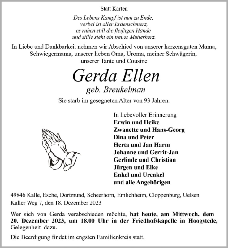 Öffentliche Abschiednahme, Friedhofskapelle Hoogstede