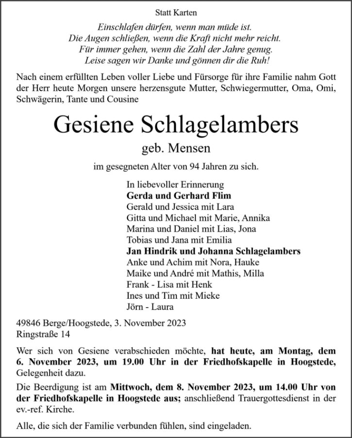Gesiene Schlagelambers geb. Mensen