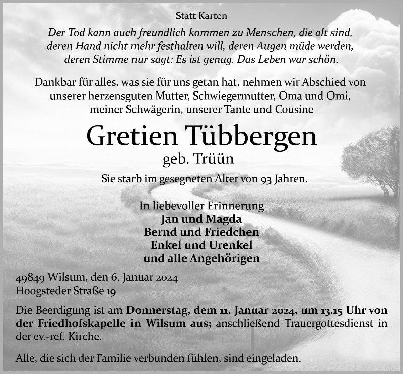 Der Tod kann auch freundlich kommen zu Menschen, die alt sind,
