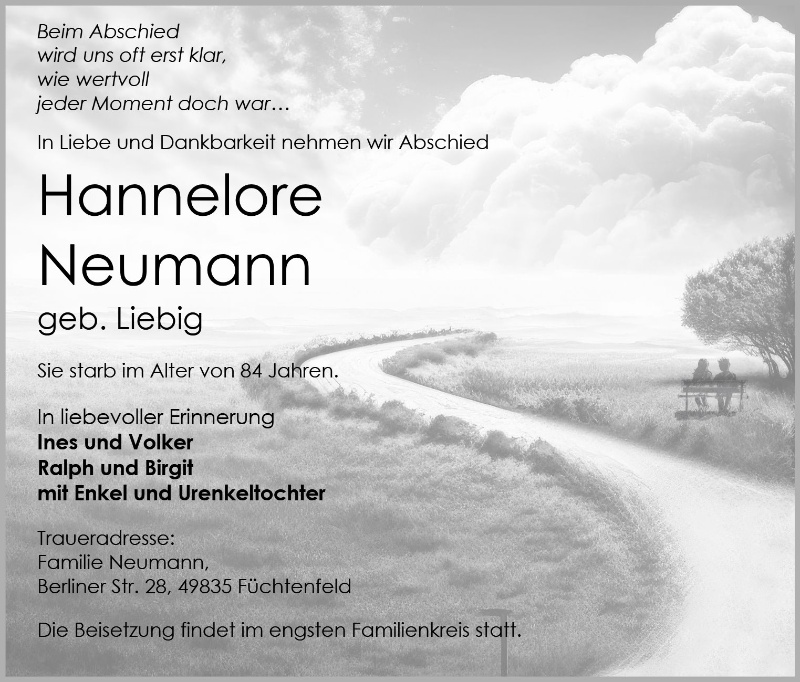 Du siehst den Garten nicht mehr grünen, du siehst die Blumen nicht mehr blühen. Hast stets geschafft, manchmal gar über Deine Kraft. Alles hast Du gern gegeben. Liebe, Arbeit war Dein Leben. Du hast ein gutes Herz besessen, nun ruhe still und unvergessen.