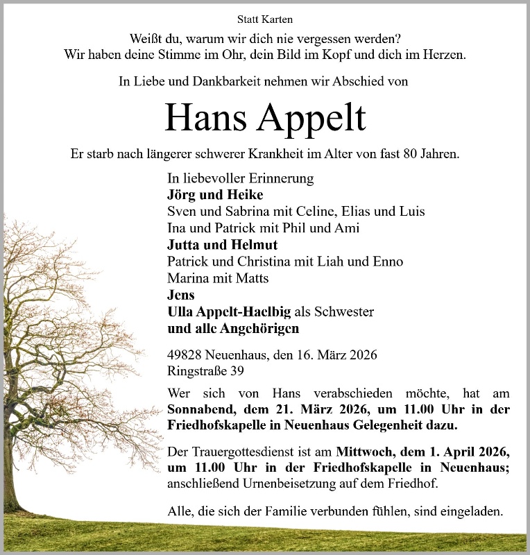 Wir haben deine Stimme im Ohr, dein Bild im Kopf und dich im Herzen.