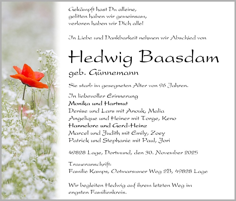 In tiefer Anteilnahme möchten wir euch unser herzliches Mitgefühl zum Verlust eure Mutter , Schwiegermutter Oma, Uroma aussprechen. Sie war eine sehr liebe Frau, die immer für euch Kindern da war und deren Güte man in jeder Begegnung spüren konnte. Auch die herzlichen Gespräche und die kleinen Momente – wie das gemeinsame Plauschen mit Gerd – bleiben in liebevoller Erinnerung. Mögen diese Erinnerungen euchTrost schenken und euch in dieser schweren Zeit Kraft geben.