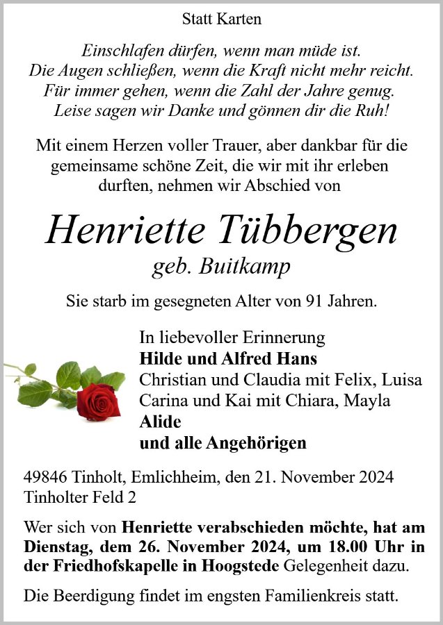 Öffentliche Abschiednahme, Friedhofskapelle Hoogstede
