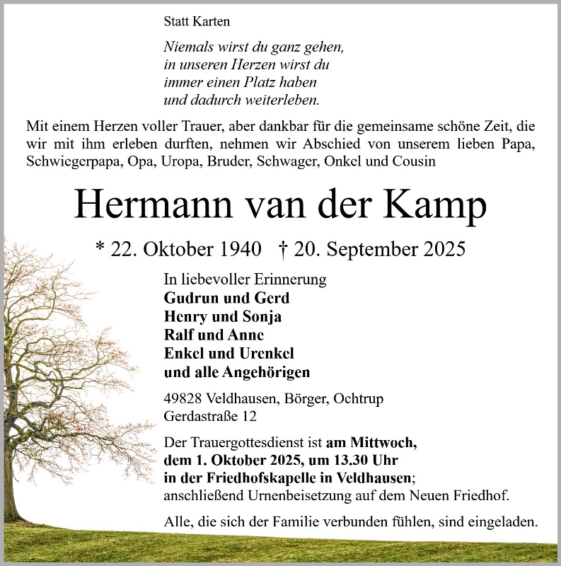 Herzliches Beileid! Ich kenne einige Personen der Familie, da sie früher am Kanal in Georgsdorf gewohnt haben! Wünsche viel Stärke ... für die ganze Familie.