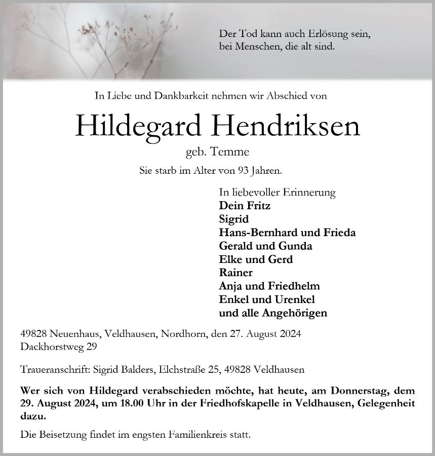 Öffentliche Abschiednahme, Friedhofskapelle Veldhausen
