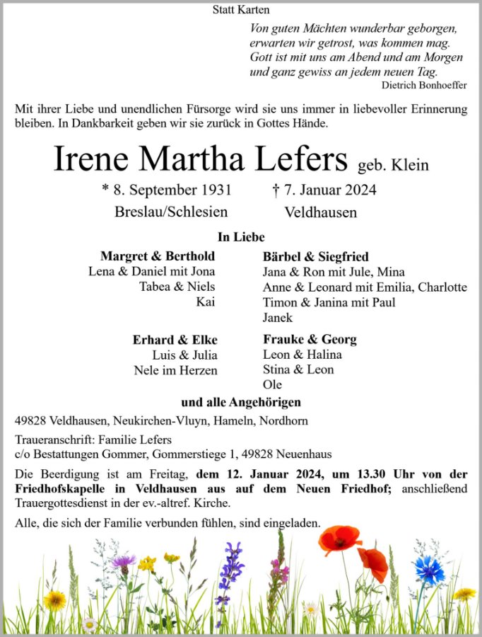 wir wünschen Ihnen für die kommende Zeit viel Kraft und dass es Ihnen gelingt, dankbar auf die positiven Erinnerungen zurückzublicken. Diese Gedenkseite möge Ihnen dabei helfen, Ihre Trauer zu teilen und das Andenken gemeinsam wachzuhalten.