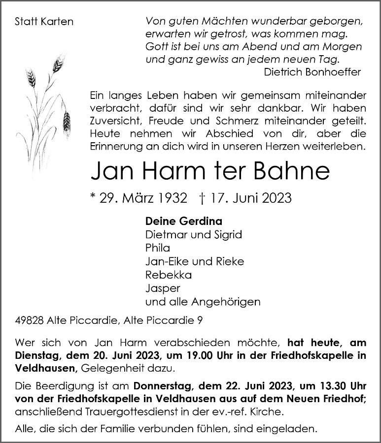 Mein Herzliches Beileid. Zum Tod eures Vaters und Schwiegervaters.Wünsche euch viel Kraft in dieser Zeit