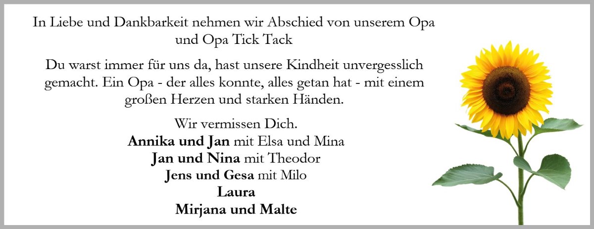 Sprechen Sie im Kondolenzbuch den Hinterbliebenen Ihr Beileid aus und teilen Sie persönliche Gedanken und Erinnerungen mit anderen.