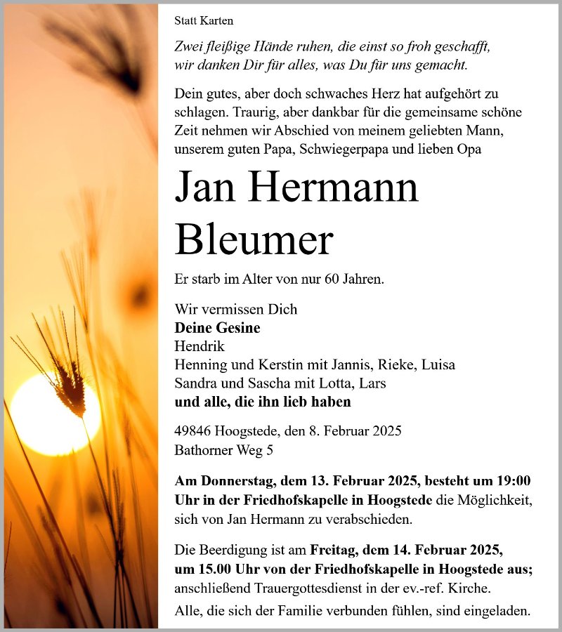 Es ist sicherlich für dich Gesine und eurer Familie sehr schwer dieser „Alltag“ ohne Jan Hermann zu bewältigen.