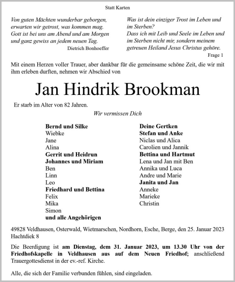 Von guten Mächten wunderbar geborgen, erwarten wir getrost, was kommen mag.