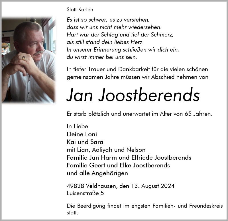 wir möchten euch unser herzlichstes Beileid aussprechen. Fühlt euch ganz fest gedrückt. Viel Kraft in dieser Zeit, Wiebke und Andy