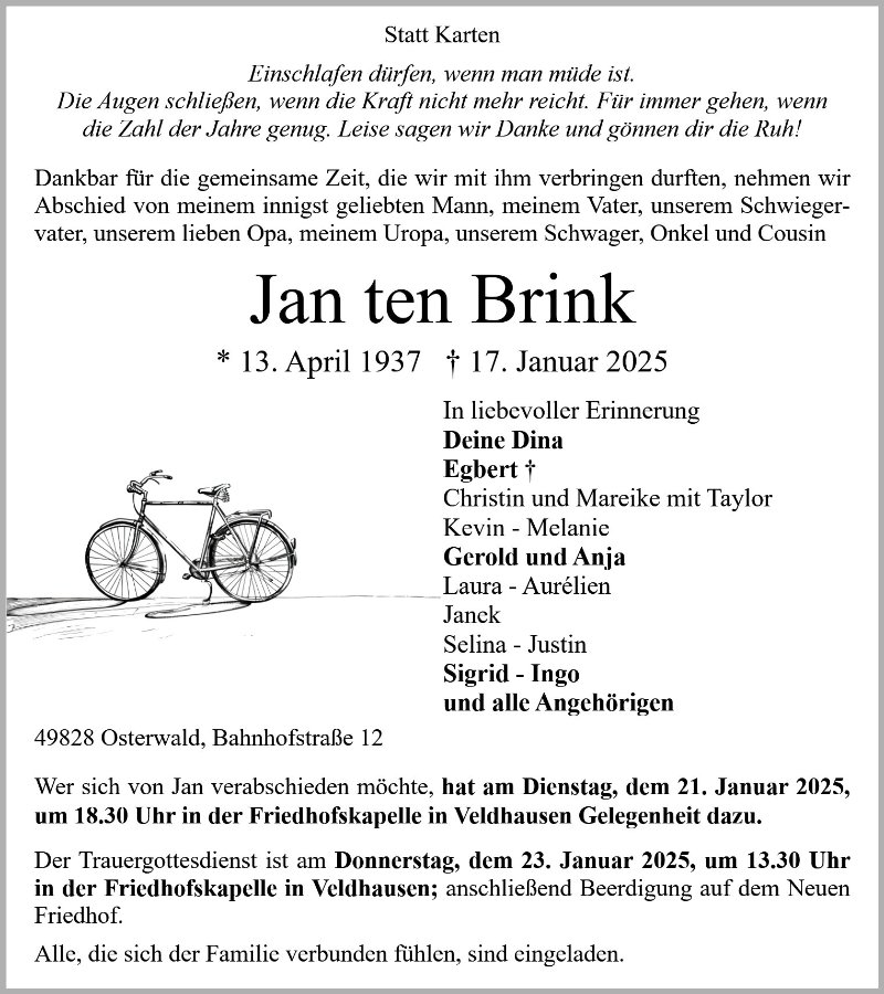 Jan ten Brinkgestorben am 17. Januar 2025