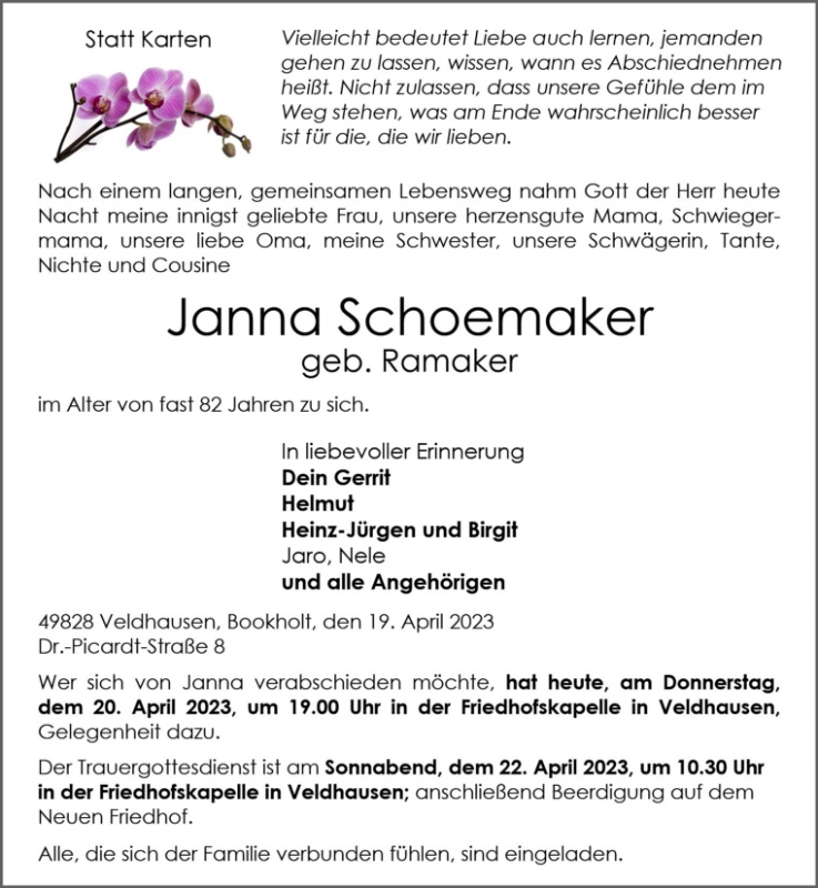 in diesen Tagen fühlen wir mit Ihnen und wünschen Ihnen von Herzen, dass Sie aus den glücklichen Erinnerungen Kraft schöpfen, um positiv in die Zukunft zu gehen. Diese Gedenkseite möge Ihnen dabei helfen, Ihre Trauer zu teilen und das Andenken gemeinsam wachzuhalten.