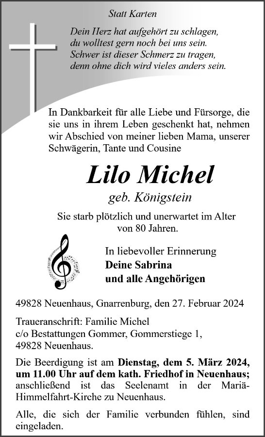 in tiefer Betroffenheit habe ich vom Tode deiner Mutter erfahren. Mein aufrichtiges Beileid. Ich wünsche dir und deiner Familie viel Kraft für die kommende Zeit. Herzliche Grüße Annette