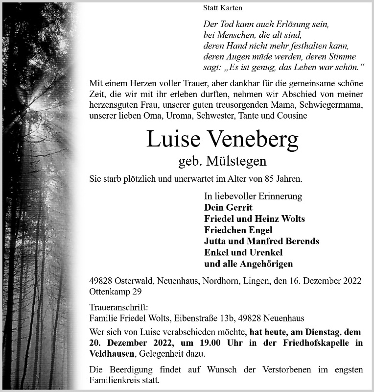 Öffentliche Abschiednahme, Friedhofskapelle Veldhausen