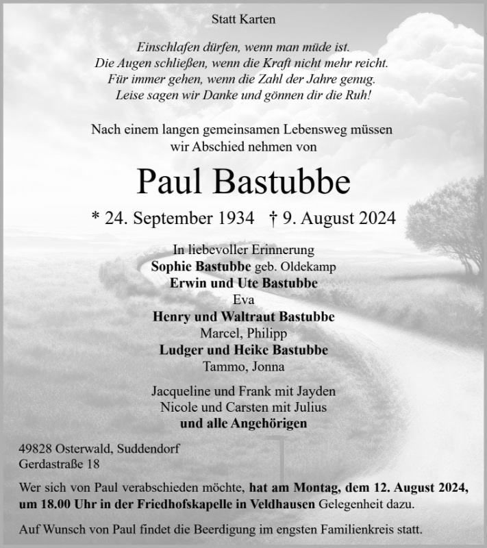 Öffentliche Abschiednahme, Friedhofskapelle Veldhausen