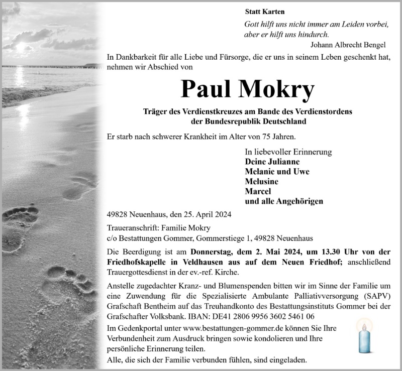 Grafschaft Bentheim auf das Treuhandkonto des Bestattungsinstituts Gommer bei der