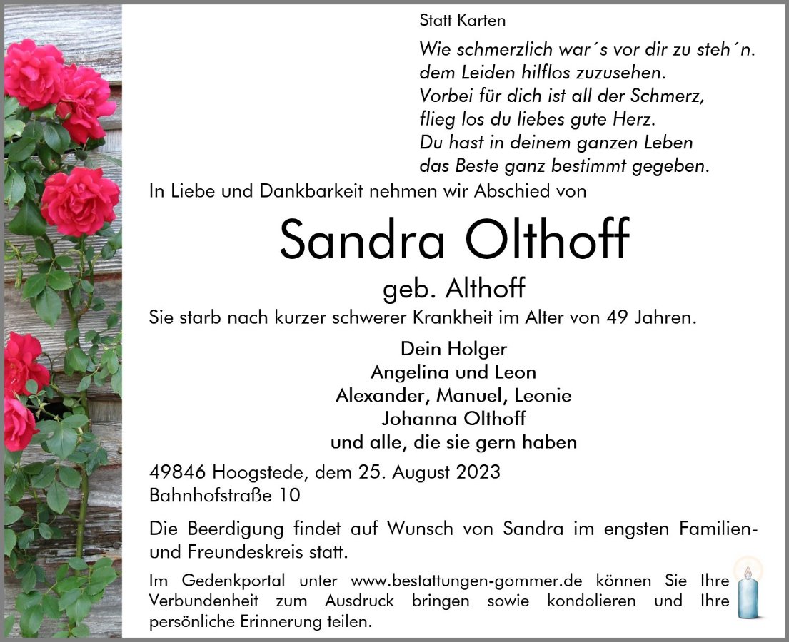 Sandra Olthoffgestorben am 25. August 2023