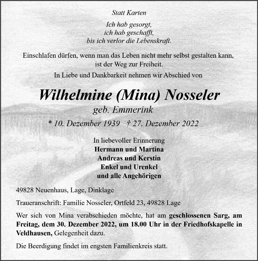 Wilhelmine Nosseler geb. Emmerink